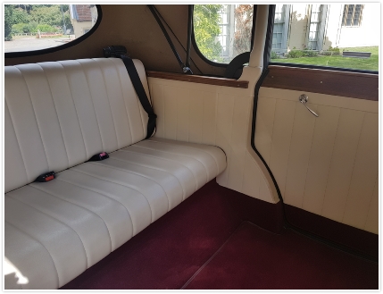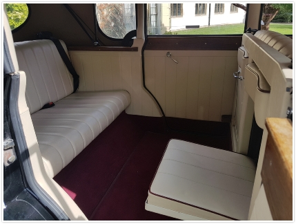 The Regent has an extremely spacious passenger compartment allowing up to 6 passengers. With the wide doors allowing plenty of access for the most elegant bridal gown, the ivory leather upholstery, wire wheels, running boards and rear luggage box, our Regent makes the perfect bridal car.